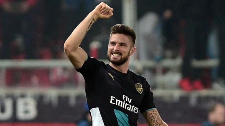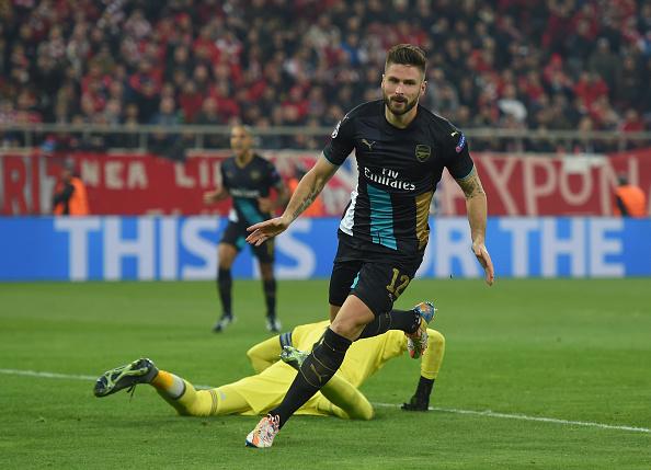 吉鲁帽子戏法,阿森纳晋级欧冠16强
